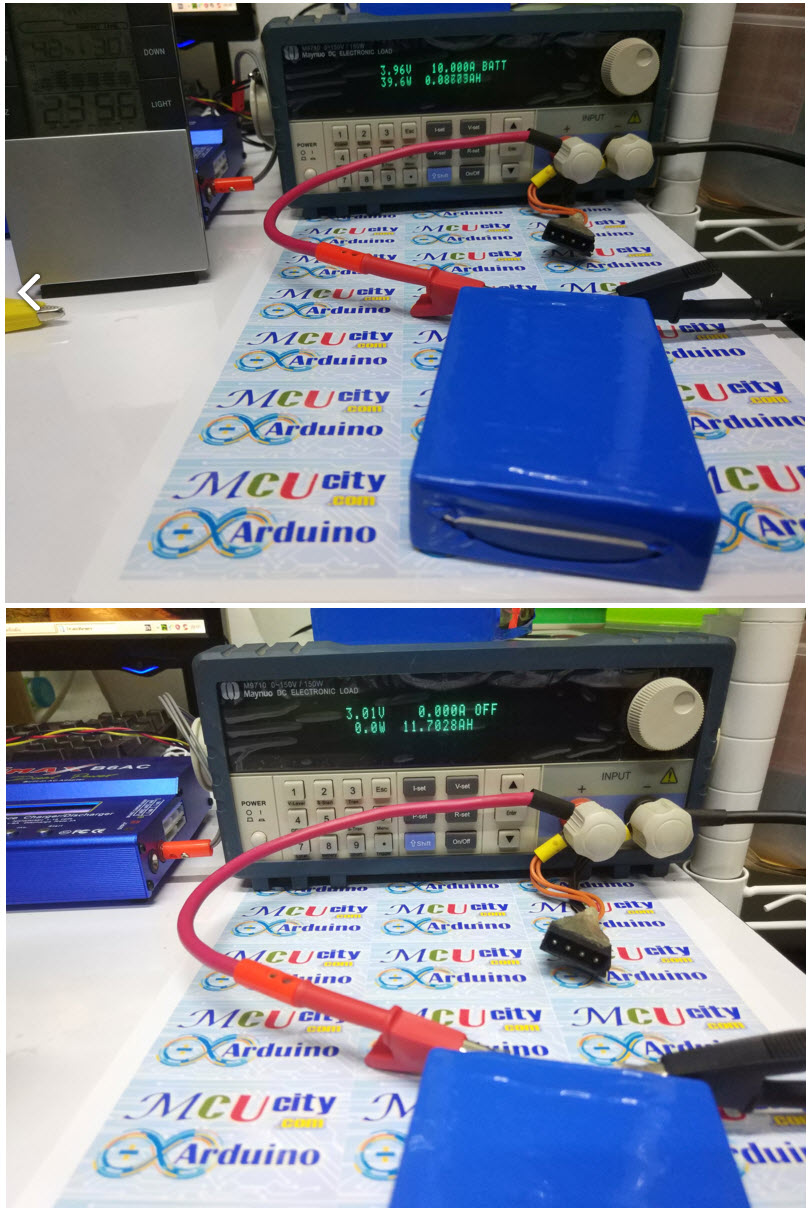 กราฟ ผลการทดสอบ จ่ายกระแสคงที่ 10A  Cut off เมื่อแรงดันต่ำกว่า 2.7V(2.6V+100mV) ได้ความจุ 11.7Ah