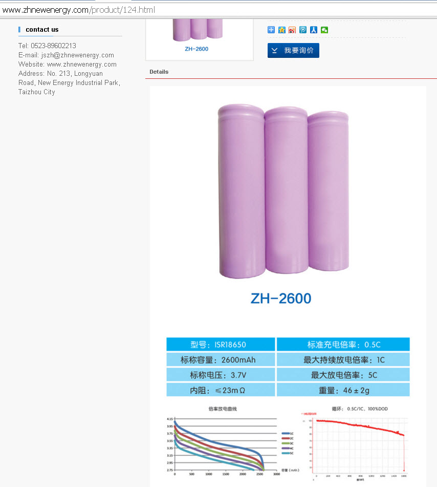 JSZH 18650-2600mAh (4C 10.4A) Lithium-ion
