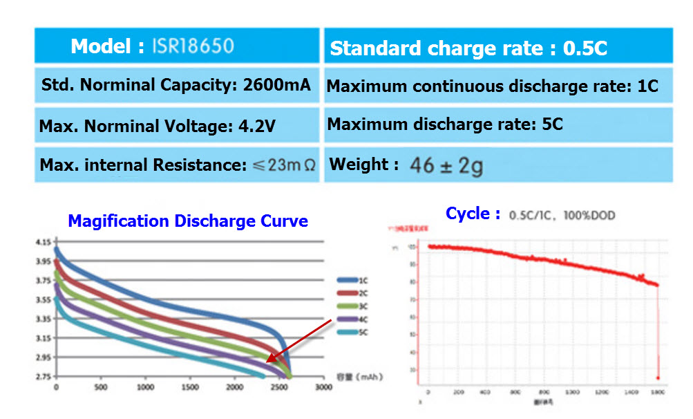 Internal Resistance :  ≤25 mΩ (0.025Ω)