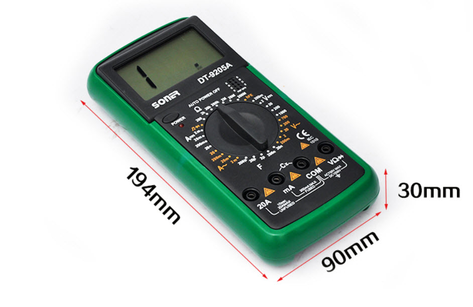 1 * DT9205A Handheld Digital Multimeter+battery 9V