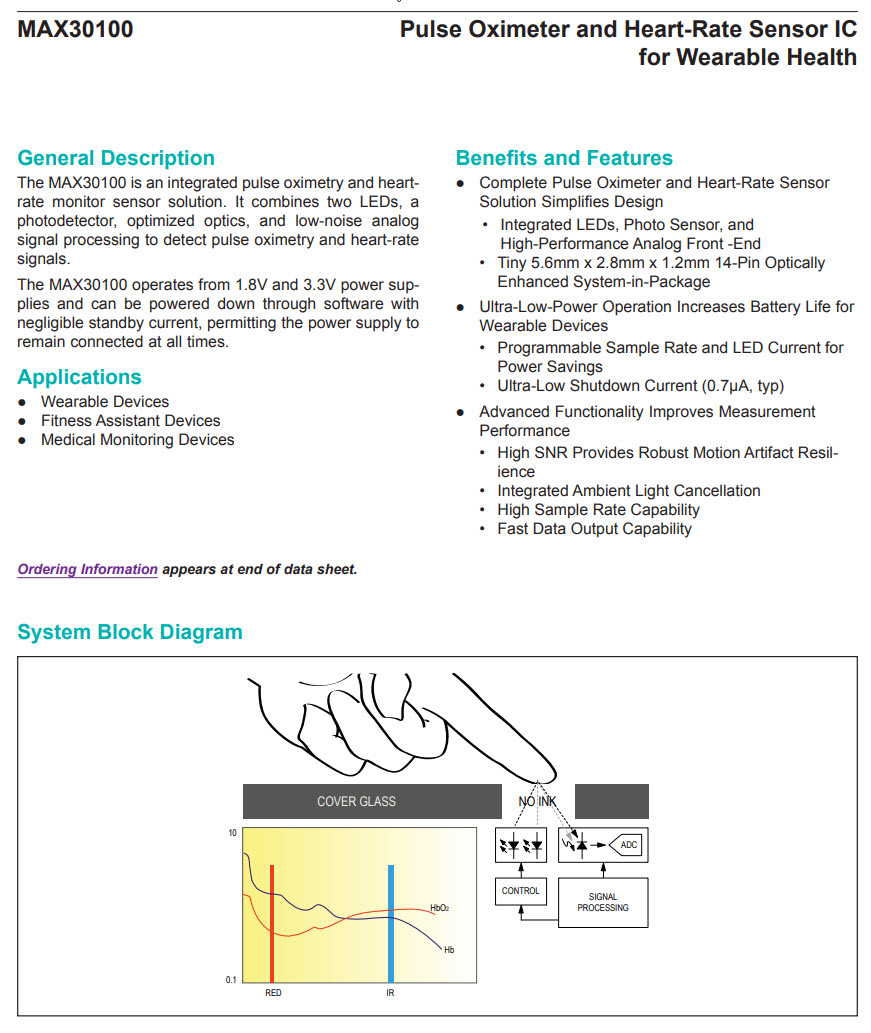 The Pulse Sensor that we make is essentially a photoplethysmograph, which is a well known medical device used for non-invasive heart rate monitoring. Sometimes, photoplethysmographs measure blood-oxygen levels (SpO2), sometimes they don't. The heart pulse signal that comes out of a photoplethysmograph is an analog fluctuation in voltage, and it has a predictable wave shape as shown in figure 1. The depiction of the pulse wave is called a photoplethysmogram, or PPG. Our latest hardware version, Pulse Sensor Amped, amplifies the raw signal of the previous Pulse Sensor, and normalizes the pulse wave around V/2 (midpoint in voltage). Pulse Sensor Amped responds to relative changes in light intensity. If the amount of light incident on the sensor remains constant, the signal value will remain at (or close to) 512 (midpoint of ADC range). More light and the signal goes up. Less light, the opposite. Light from the green LED that is reflected back to the sensor changes during each pulse.