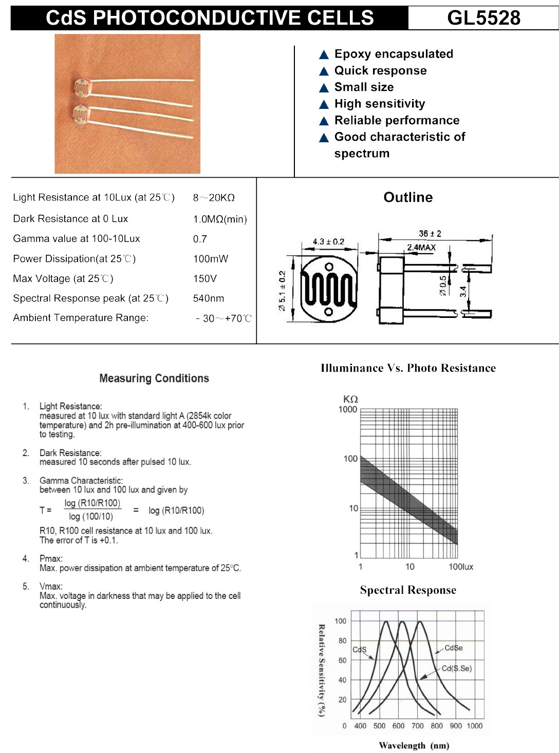LDR 5528 photoresistor photoelectric switch element photodetector element 5MM