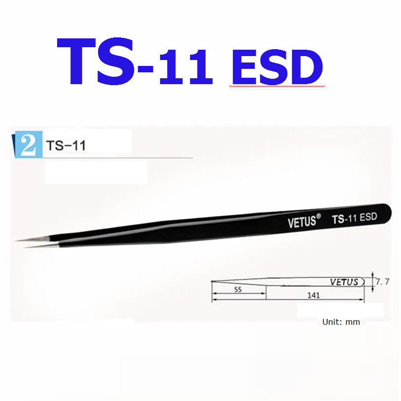 TS-11 ESD (Pointed) : the tweezers is longer than standard length, suitable for precision electronic parts operation.