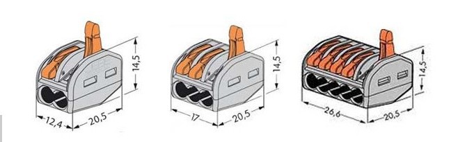 เทอมินอลต่อสายไฟ ลูกเต๋าเชื่อมต่อสายไฟ ขั้วต่อสายไฟ 3 Pin Universal compact wire wiring PCT-214 , PCT214