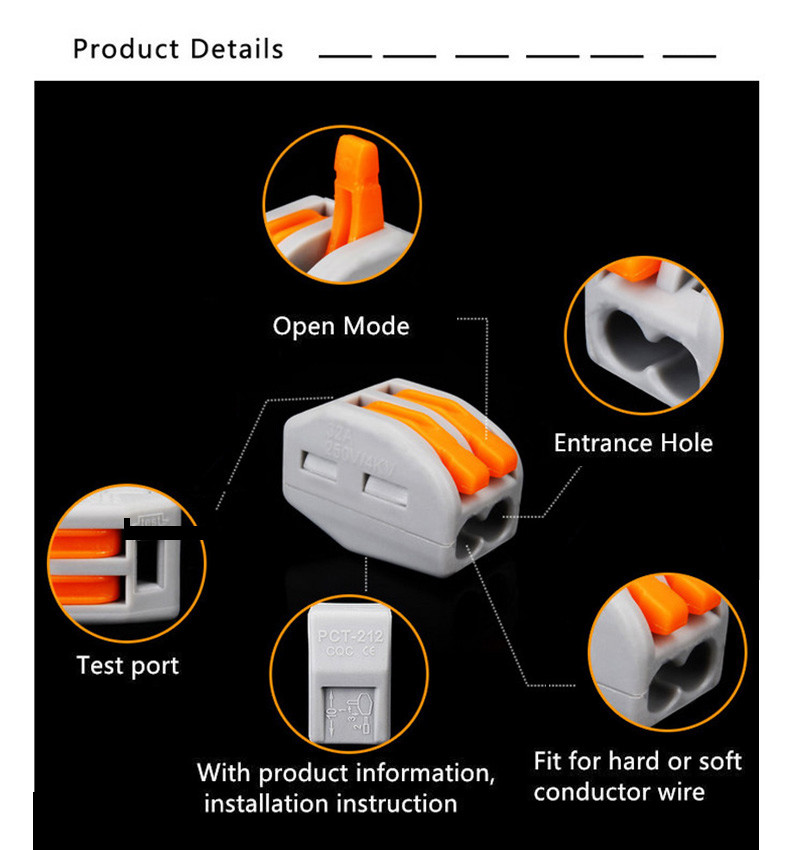 เทอมินอลต่อสายไฟ ลูกเต๋าเชื่อมต่อสายไฟ ขั้วต่อสายไฟ 2 Pin Universal compact wire wiring PCT-212 , PCT212