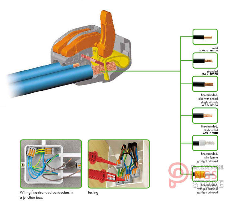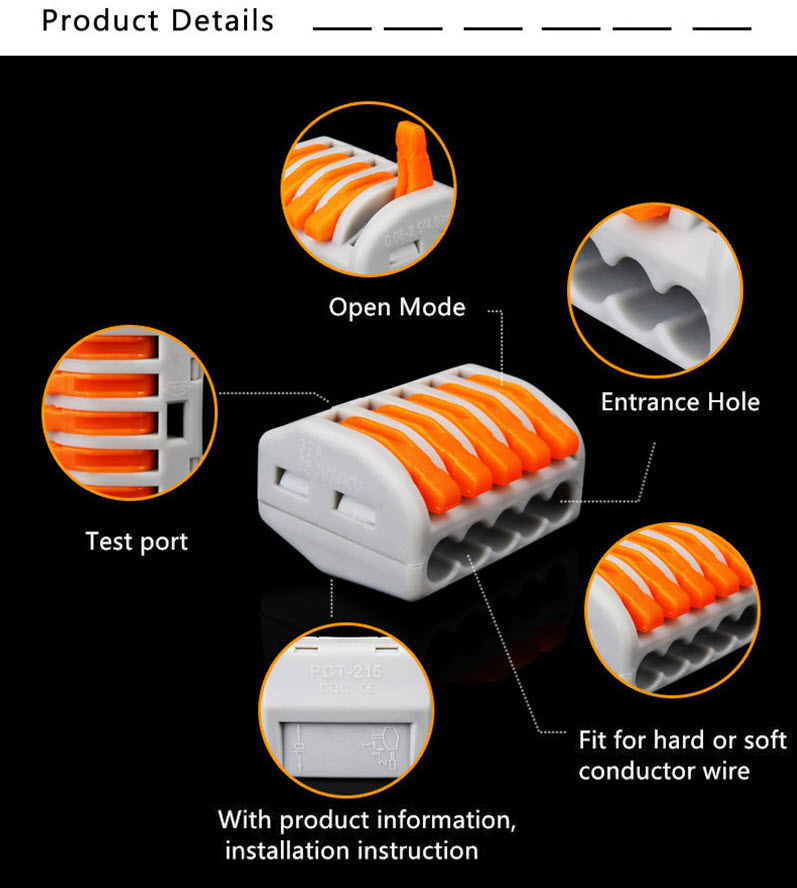 32A Spring Lever Push Cable Connector Terminal Block from 2 3 5 Way