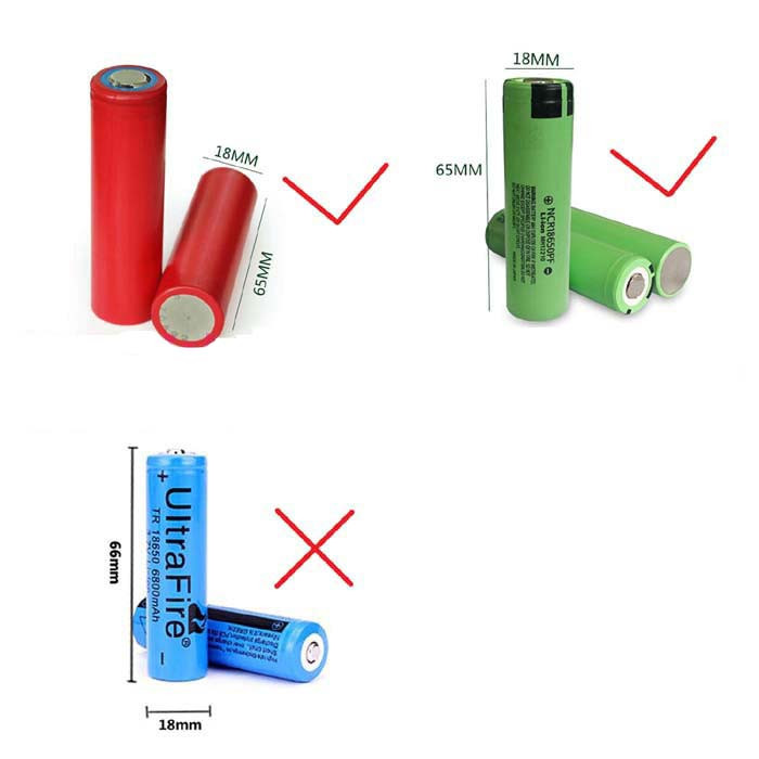 2. The battery is 3.7 V 18650 Flat top unprotected battery.