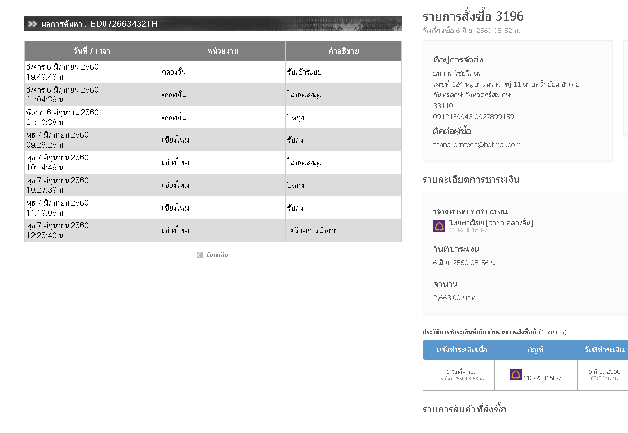 โอเคร ครับ สรุป เลขเเทร็คผิด ขอบคุณมากนะครับ ได้รับของเเล้ว ครับ